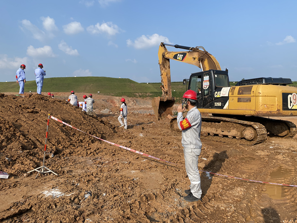 演練模擬礦山施工作業(yè)面35平臺進行爆破作業(yè),由于炮孔充填深度不夠,導致沖孔現(xiàn)象,產(chǎn)生飛石,現(xiàn)場管理人員在礦區(qū)北側警戒時,被爆破飛石砸中,導致腿部受傷,傷勢嚴重。總指揮在接到救援電話后,立即啟動三級應急預案,通知辦公室、各應急小組就位。礦山應急救援隊員攜帶專業(yè)救援裝備,駕駛應急救援車,拉警報,火速趕赴事故現(xiàn)場。到達現(xiàn)場后,立即判斷受傷人員傷情,及時救出并進行止血包扎、固定等簡單處理后由救援隊員用擔架抬上120救護車,并送往就近醫(yī)院救治。演練過程中各應急小組各司其職、協(xié)同作戰(zhàn)、反應迅速,整個演練過程在快速、緊張、有序的氛圍中進行,圓滿完成了各項預定任務。	   	  	  				此次放炮應急預案演練貼近實戰(zhàn)、分工明確、行動迅速、救援工作有條不紊地執(zhí)行。既督促企業(yè)落實安全主體責任,指導提高員工的安全隱患意識和管理能力,確保了黃槽坊礦山的整體安全,又達到了檢驗礦山應急救援小組的實戰(zhàn)和應對突發(fā)事件的應急處置能力的目的,更進一步檢驗了預案的可操作性和針對性,為今后突發(fā)生產(chǎn)安全事故下熟練完成救援任務打下了堅實的實戰(zhàn)基礎。