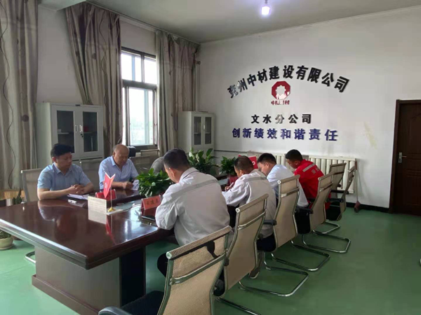 2021年6月14日端午節(jié),兗州中材副總經(jīng)理顏景祥、安全部副經(jīng)理高金軒、中陽項(xiàng)目部專職安全員侯海鵬一行不辭辛勞,蒞臨國(guó)金和中陽項(xiàng)目檢查督導(dǎo)安全工作。 	顏總先是來到文水分公司項(xiàng)目部,對(duì)項(xiàng)目部的形象建設(shè)進(jìn)行了點(diǎn)評(píng),隨后在會(huì)議室進(jìn)行了簡(jiǎn)單的會(huì)議,會(huì)議上分公司項(xiàng)目經(jīng)理王建立對(duì)分公司上半年的安全生產(chǎn)情況作了詳細(xì)匯報(bào)。