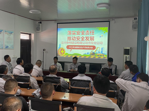 今年6月是全國第20個“安全生產(chǎn)月”,為了充分營造安全生產(chǎn)氛圍,提高安全管理水平,加強(qiáng)安全生產(chǎn)防范意識,蘭陵分公司在6月1日開展了一系列以“落實(shí)安全責(zé)任,推動安全發(fā)展”為主題安全生產(chǎn)月活動,取得了良好的效果。   	6月1日一早,分公司全體人員在培訓(xùn)室全程觀看“重慶能投渝新能源有限公司松藻煤礦 9.27重大火災(zāi)事故”、 “山東煙臺棲霞市笏山金礦1.10重大爆炸事故”、“ 湖南省衡陽市耒陽市導(dǎo)子煤業(yè)有限公司源江山煤礦11.29 重大透水事故”等三個安全生產(chǎn)事故警示教育片,使大家在吸取事故慘痛教訓(xùn)同時受到了一次深刻的安全教育。   	   	8點(diǎn)整,安全生產(chǎn)月活動動員大會開始。會上,分公司經(jīng)理龔士朋號召大家以這次安全生產(chǎn)月活動為契機(jī),認(rèn)真學(xué)習(xí)安全生產(chǎn)法律、法規(guī)和操作規(guī)程,切實(shí)提高安全生產(chǎn)技能,提高安全生產(chǎn)意識,落實(shí)安全生產(chǎn)責(zé)任,推動社會安全平穩(wěn)發(fā)展。龔經(jīng)理強(qiáng)調(diào),要將安全責(zé)任的落實(shí)全方位融入到全年的安全生產(chǎn)中,提升安全管理水平,提高風(fēng)險管控水準(zhǔn),確保安全底線不被突破,確保安全穩(wěn)定的工作局面不被打破。臨沂中聯(lián)礦山部安全員宋明遠(yuǎn),為大家進(jìn)行安全培訓(xùn)教育,他結(jié)合事故案例教訓(xùn),講解了各個工種在作業(yè)中容易產(chǎn)生的安全問題以及可能造成的嚴(yán)重后果,讓大家做到警鐘常鳴,安全弦緊繃。 	大會結(jié)束后,全體員工在印有“落實(shí)安全責(zé)任,推動安全發(fā)展”的橫幅上,莊重地簽上自己的名字,他們簽上的不僅是一份承諾,更是一份責(zé)任。