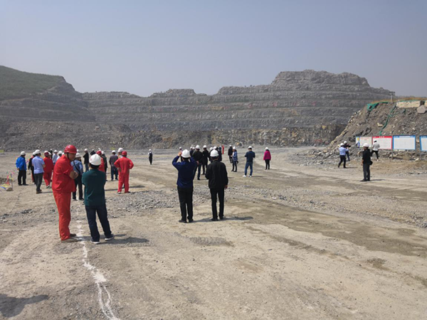 河南省露天礦山雙重預(yù)防體系建設(shè)示范企業(yè)研討會(huì)參會(huì)人員參觀千業(yè)水泥谷堆后水泥灰?guī)r礦現(xiàn)場