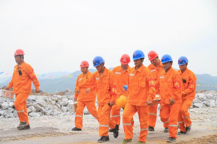 兗州中材建設(shè)有限公司瑞金項(xiàng)目部緊緊圍繞2017年安全月主題“全面落實(shí)企業(yè)安全生產(chǎn)主體責(zé)任”,為進(jìn)一步增強(qiáng)項(xiàng)目部全體干部職工應(yīng)對(duì)突發(fā)事故的綜合處置及應(yīng)急救援能力,鍛煉和提高應(yīng)急救援組織搶險(xiǎn)救災(zāi)過程中與各單位協(xié)調(diào)、配合救援的實(shí)戰(zhàn)能力,保障員工生命財(cái)產(chǎn)安全, 6月28日,兗州中材建設(shè)有限公司瑞金項(xiàng)目部在瑞金萬年青公司“貓子寨”石灰石礦山北區(qū)+255米平臺(tái)開展礦山爆破事故應(yīng)急救援演練。 	贛州市安監(jiān)局副局長(zhǎng)李興榮、瑞金市安監(jiān)局局長(zhǎng)鐘隆發(fā)和瑞金市公安局、瑞金市中醫(yī)院(醫(yī)護(hù)人員)、云石山鄉(xiāng)政府、云石山鄉(xiāng)派出所、瑞金市各礦山企業(yè)負(fù)責(zé)人應(yīng)邀到現(xiàn)場(chǎng)觀摩,瑞金萬年青公司領(lǐng)導(dǎo)班子成員李瑤、郭偉榮、余紅忠到場(chǎng)觀摩演練。公司副書記何芳訓(xùn)及安全部副部長(zhǎng)高金軒參與了本次演練。邀請(qǐng)了瑞金市電視臺(tái)、瑞金市電臺(tái)、瑞金報(bào)社及瑞金市精誠(chéng)傳媒公司進(jìn)行現(xiàn)場(chǎng)取材報(bào)道。  	本次演練設(shè)置了現(xiàn)場(chǎng)指揮組、警戒組、救援組、醫(yī)療救護(hù)組、后勤保障組、技術(shù)組、通信保障組,現(xiàn)場(chǎng)指揮為項(xiàng)目經(jīng)理吳新海。整個(gè)演練活動(dòng)分為演練注意事項(xiàng)講解、事故現(xiàn)場(chǎng)模擬、緊急救援演練和演練總結(jié)評(píng)估等內(nèi)容。  	 為增加演練的真實(shí)性和有效性,在應(yīng)急救援正式演練前,瑞金項(xiàng)目部在演練區(qū)域進(jìn)行了一次真實(shí)的爆破,由于爆破剛剛結(jié)束,各救援組成員均在各自不同的崗位上,擺脫以往應(yīng)急演練時(shí)各救援組已經(jīng)集結(jié)等待救援的模板形式,通過人員的集結(jié),檢驗(yàn)了救援組集結(jié)速度、效率、協(xié)同及時(shí)效。  	在現(xiàn)場(chǎng)總指揮的統(tǒng)籌安排和正確指揮下,全體演練人員共同努力圓滿完成了本次爆破事故應(yīng)急救援演練。11點(diǎn)20分,所有參演人員在項(xiàng)目部礦山辦公室現(xiàn)場(chǎng)召開了演練評(píng)估會(huì),項(xiàng)目部經(jīng)理吳新海進(jìn)行了演練總結(jié),贛州市安監(jiān)局副局長(zhǎng)李興榮對(duì)本次演練進(jìn)行了點(diǎn)評(píng)。   	本次演練歷時(shí)1個(gè)半小時(shí),達(dá)到了預(yù)期演練目的,通過這次演練,使所有應(yīng)急救援人員進(jìn)一步熟悉、掌握應(yīng)急救援知識(shí),提高員工的應(yīng)急救援水平,鍛煉了員工自救、急救的能力。也使我們積累了應(yīng)對(duì)突發(fā)事件的實(shí)戰(zhàn)經(jīng)驗(yàn),增強(qiáng)全體員工的安全意識(shí)。       	                                                                               |