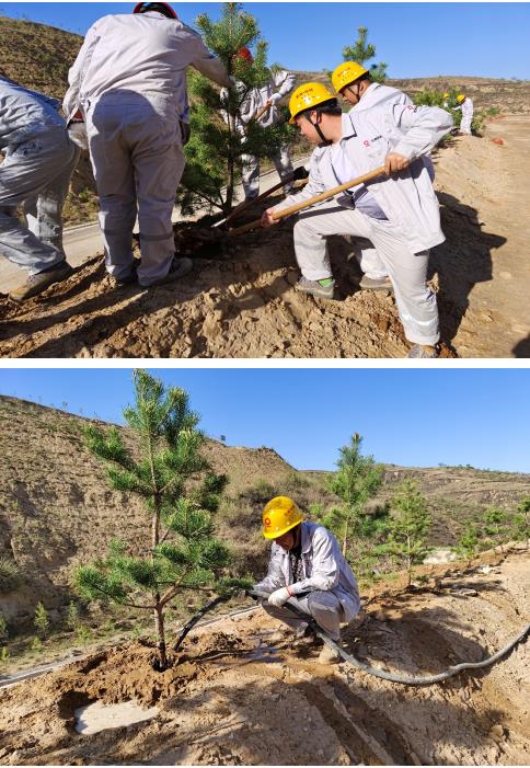 活動(dòng)現(xiàn)場(chǎng),員工們分工合作,熱情高漲。揮鍬、挖坑、培土、種樹、澆水……經(jīng)過大家的辛勤勞動(dòng),一棵棵新栽樹苗迎風(fēng)而立,給礦山增添一片新的綠色生機(jī)。
