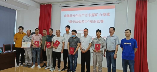 今年6月是全國第21個(gè)安全生產(chǎn)月,安全生產(chǎn)月的主題是“遵守安全生產(chǎn)法,當(dāng)好第一責(zé)任人”,今天也是全國安全宣傳日,南城縣安全生產(chǎn)委員會礦山安全專業(yè)委員會決定在江西南城南方水泥有限公司舉辦南城縣非煤礦山“新安法,知多少”知識競賽活動。 參賽隊(duì)伍:(1號隊(duì))南城縣新泰石材廠、(2號隊(duì))南城縣南景東風(fēng)礦業(yè)有限公司、(3號隊(duì))南城縣富耀瓷土有限公司、(4號隊(duì))南城縣青玉礦業(yè)有限公司、(5號隊(duì))江西煜晟礦業(yè)有限公司、(6號隊(duì))兗州中材建設(shè)有限公司南城分公司、(7號隊(duì))江西昌和礦業(yè)有限公司。