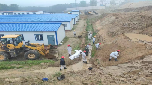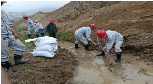 2022年6月20日早6點,接應(yīng)急管理部門通知吉林地區(qū)預(yù)計未來24小時內(nèi)將有強降雨,舒蘭分公司項目經(jīng)理宋憲軍緊急通知各科室人員,組織對現(xiàn)場、生活區(qū)、炸藥庫、維修車間等地點進行了防汛設(shè)施檢查。生活區(qū)東側(cè)邊坡被臨近公司時候后未進行修整,加之連續(xù)降雨一整夜,東側(cè)邊坡垮塌,淹沒排水溝,造成堵塞。       接到通知后,生產(chǎn)科,立即調(diào)用裝載機趕到現(xiàn)場,組織員工帶好防汛裝備趕到現(xiàn)場?,F(xiàn)場負責(zé)人周浩講“裝載機立即清理邊坡上的塌陷料,生產(chǎn)科組織人員去上游疏通水道,安全科和設(shè)備科組織人員去邊坡上面挖掘水溝設(shè)置擋墻,避免水流二次破壞邊坡”,任務(wù)分配完畢后,各科室?guī)ьI(lǐng)人員緊鑼密鼓的組織起來。