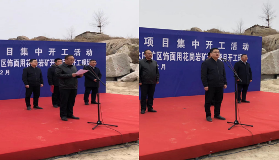 萊州市委常委、市委辦公室主任王恒齊對(duì)兗州中材入駐萊州表示歡迎,希望項(xiàng)目全體職工盡心盡力,盡職盡責(zé),打造精品工程,綠色礦山,助力萊州石材產(chǎn)業(yè)快速振興,并宣布正式開工。
