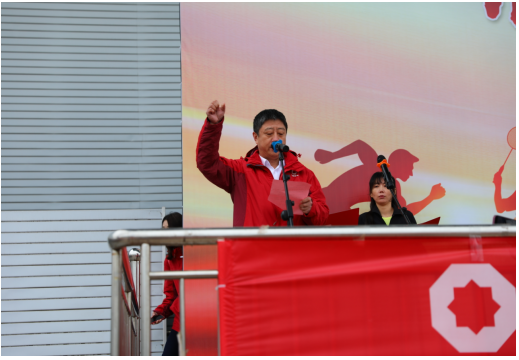 (兗州中材黨委委員、副總經(jīng)理顏景祥致詞)       踏著激昂的運動員進(jìn)行曲節(jié)拍,運動員們精神抖擻、斗志昂揚,排列著整齊的方陣,在旗手的引領(lǐng)下,喊著響亮的口號,依次有序地走過主席臺。